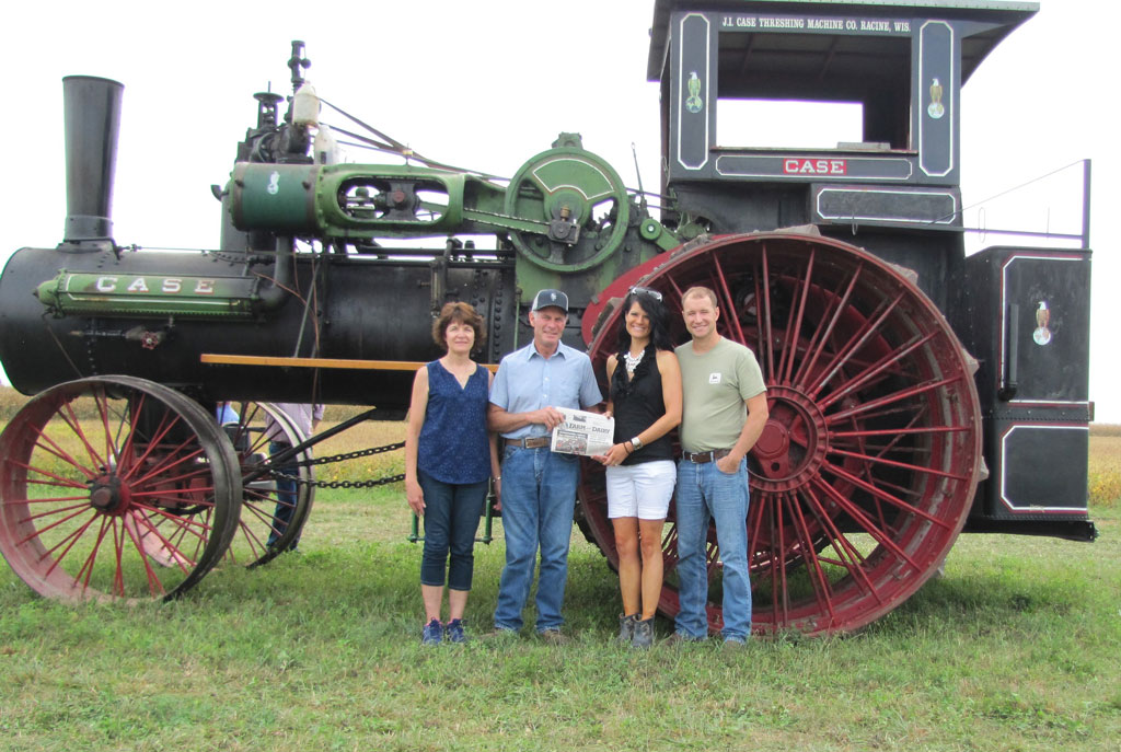 The family is standing in front of a 110-horsepower Case steam engine that stands 12.5 feet tall, 13 feet wide and weighs 48,000 pounds. It was one of many tractors and other equipment from throughout the centuries featured at the show.