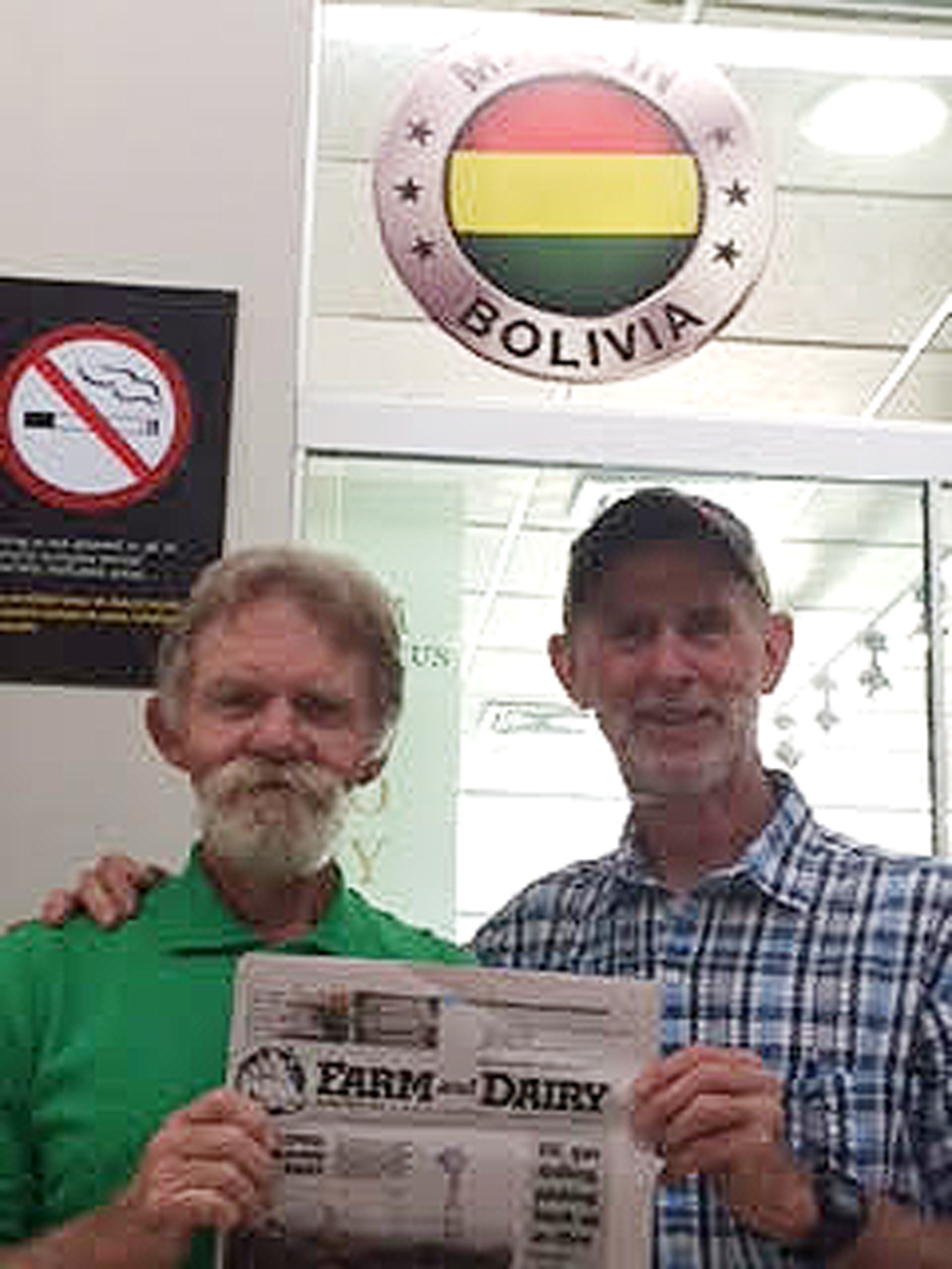 Rusty Walters, of Dennison, Ohio, and Joe Linden, of Seville, Ohio, took their copy of Farm and Dairy on a mission trip to Tambo, Boliva, in April. The group was putting in a water treatment system for a Christian camp in the Andes Mountains.