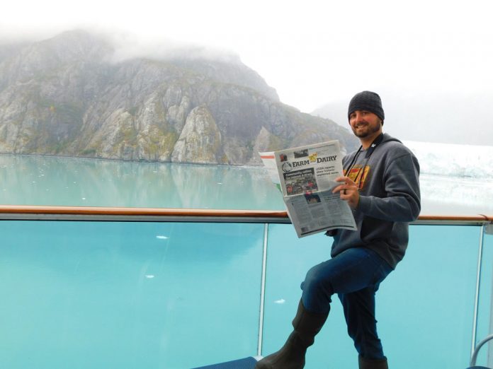 We went honeymooning with Tyler Sims, of Louisville, Ohio. Here he is with Farm and Dairy in front of Margerie Glacier in Glacier Bay National Park in Alaska.