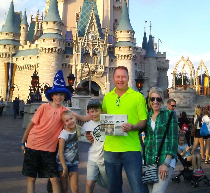 The Grupps from Portersville, Pennsylvania, brought the Farm and Dairy newspaper on their trip to Walt Disney World in Orlando, Florida, Feb. 2. Jack, Tessa, Torren, John and Jodi pause in front of Cinderella’s Castle. (Submitted photo)