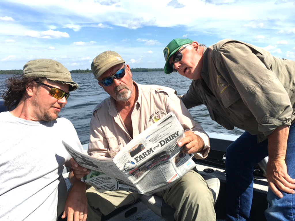 Mike McDowell, Gary Gallion and Paul McDowell took a break from fishing to catch up on Farm and Dairy news during their July trip to Temple Bay Lodge on Eagle Lake in Western Ontario. They have been fishing there for 10 years — this year’s average catch per day was in excess of 100 fish.