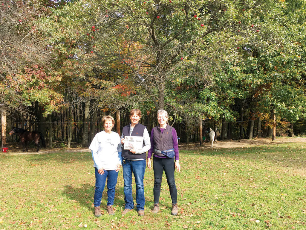 Patti Dolezal of Geauga County and Patty Eskridge and Carol Weigand of Portage County brought Farm and Dairy along for some camping and horse riding at 2 Mile County Park just north of Franklin, Pa. (Submitted photo)