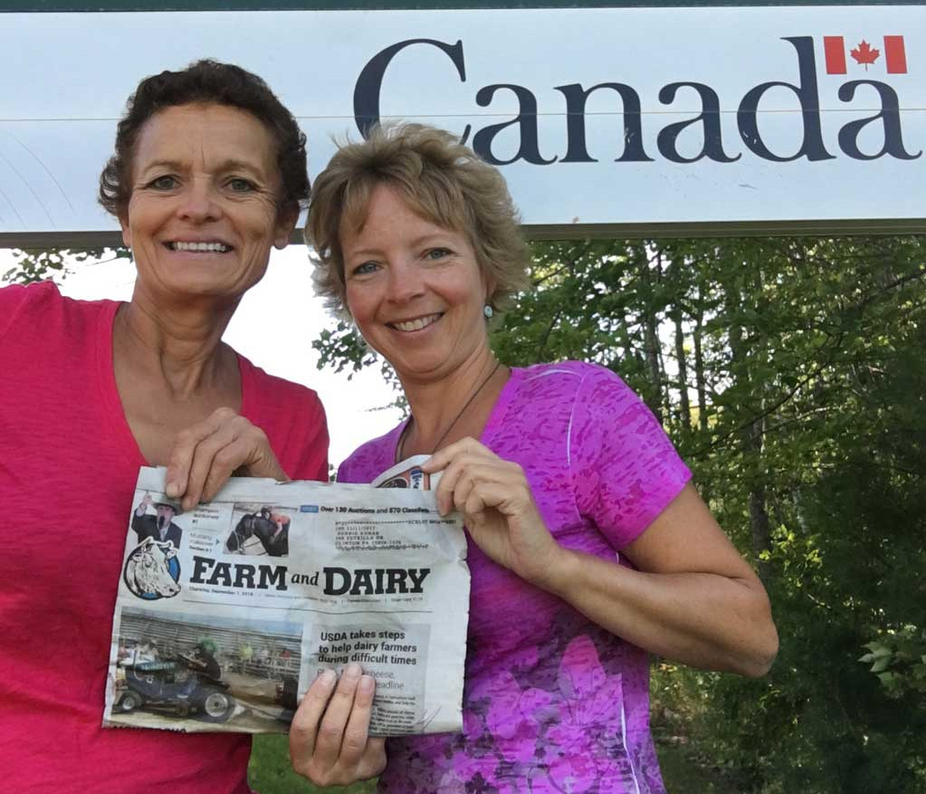 Debbie Kuhar and Lisa Slepski, of Clinton, Pennsylvania, sported the Farm and Dairy while they biked and hiked along New Brunswick and Prince Edward Island, Canada, in September.