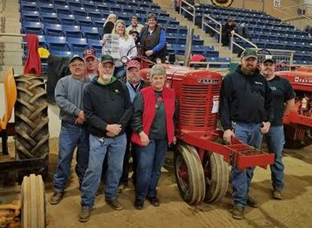 This group from Washington County, Pennsylvania, attended the 101st Pennsylvania Farm Show in Harrisburg Jan. 11. The group participated in the Antique Tractor Show and Pull held during the farm show. Pictured are (front row): Keith Aggers, Myrta Litman and Steven Aggers; (second row) George Marth took Minnapople Moline, Roy Ealy took Farmall M and Shawn Moore; (third row) Larry Litman took Farmall M; and (on the tractor): Amy and Chris Gibson took Farmall M and Linda Ealy.