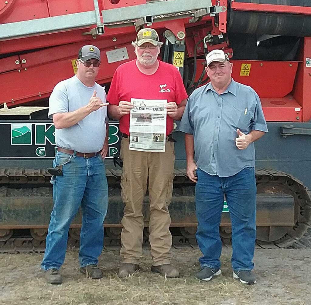 Bill Woronka, Father and Son Property Maintenance; Jerry Glessner, Jerry’s Trucking and Excavating; and Mark Begue, Begue Excavating, travelled with the Farm and Dairy to the Yoder & Frey Auction. (Submitted photo)