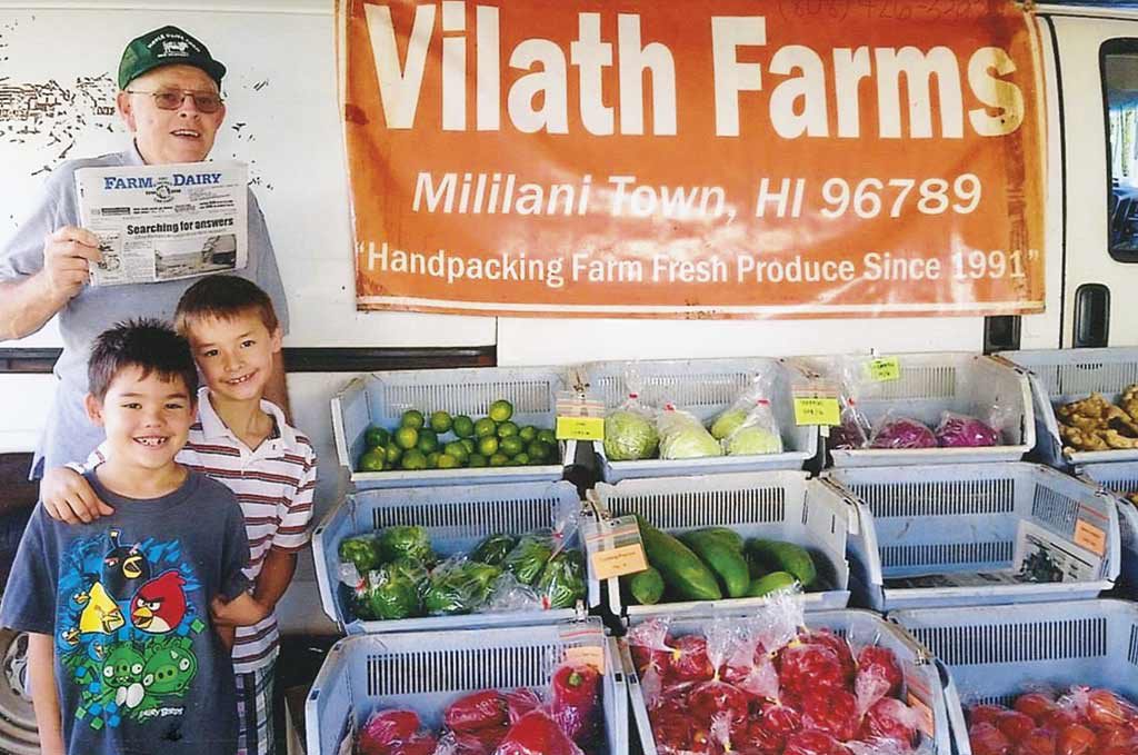 Farm and Dairy went to Hawaii in early October with David and Carol Lee, of Wexford, Pennsylvania, to visit their daughter and her family in Mililani on the island of Oahu. Pictured are David and his 7-year-old twin grandsons, Patrick (in stripes) and Liam (in Angry Birds). They are at the weekly farmers’ market at Mililani High School where their mother teaches.