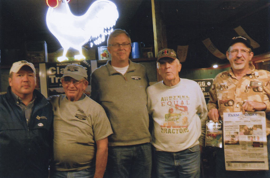 Pictured (left to right): Duke Whiting, Paul Kauffman, “Machinery Pete,” Wayne Cooper and Jay Graham. The group took Farm and Dairy along for their Nov. 6 trip to the National Farm Toy Show in Iowa. They stopped at the Machine Shed Restaurant in Davenport. It was there that they met up with Machinery Pete and his book signing of auction results.