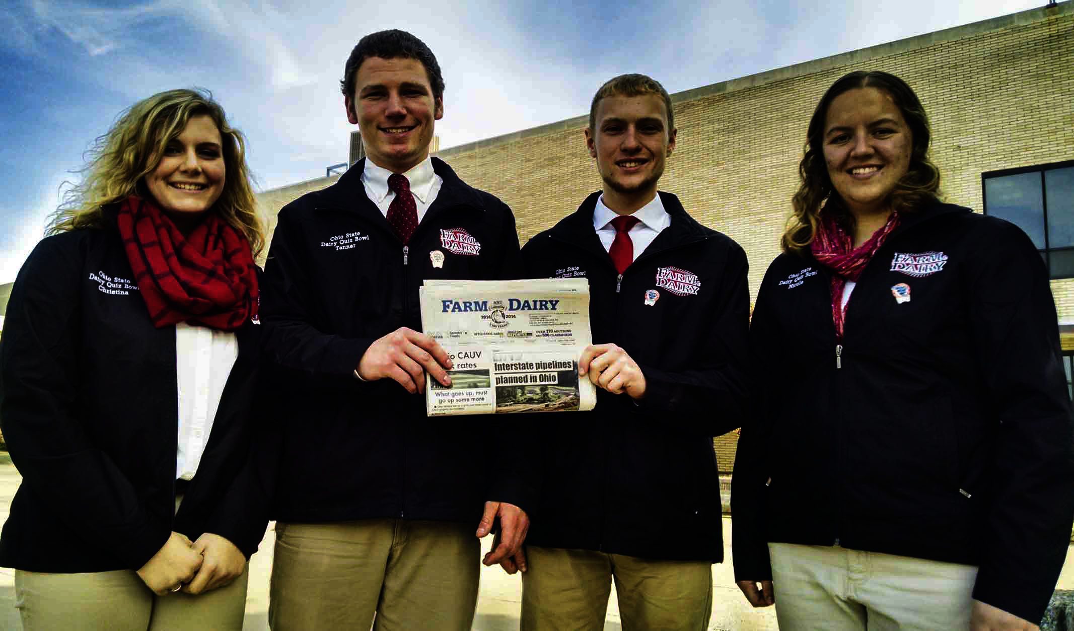 Ohio Quiz Bowl team members (from left) Christina Coler of Mahoning County, Tanner Topp of Wayne County, Levi Plocher of Mahoning County, and Nicole Walters of Delaware County tied for fifth place out of 14 state teams competing in the National 4-H Dairy Knowledge Quiz Bowl Nov. 7 and 8 in Louisville, Kentucky. And, of course, they brought Farm and Dairy along for the ride.