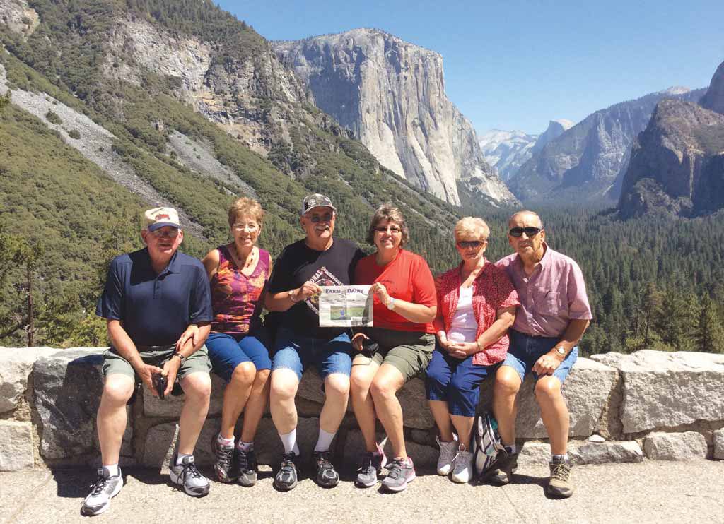 This group of friends took us along on their vacation to Yosemite National Park in California. Pictured (L-R) are Wayne and Marilyn Johnson, of Bristolville, Ohio; Jim and Carolyn Schwartz, of North Bloomfield; and Marilyn and Roger French, of Bristolville. The bus tour of the California coast was a pre-celebration of the Schwartz’s 50th wedding anniversary!
