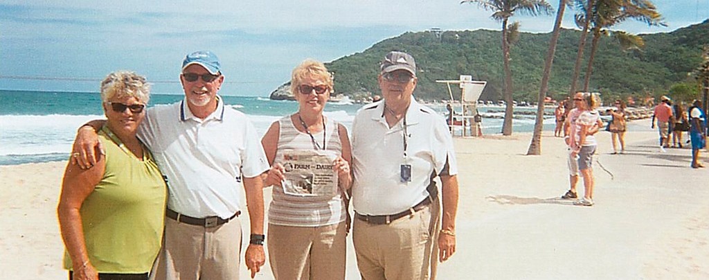 Bob and Terri Roesch stopped on the island of Labadee, Haiti, while on a cruise in November. Pictured is Roxie Hord, Mike Hord, Terri Roesch and Bob Roesch. Terri and Rozie are cousins. They took time to enjoy their Farm and Dairy while at the beach.