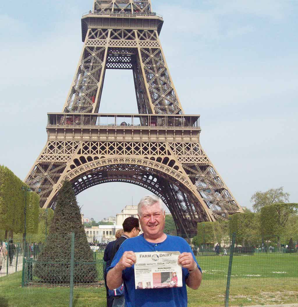 Dale Cerar, of Robinson Township, Pennsylvania, recently spent a few days in Paris before taking a cruise of the Moselle and Rhine rivers that ended in Basel, Switzerland. Before leaving the famed City of Lights, Cerar and the latest edition of Farm and Dairy posed for photo beneath the Eiffel Tower.