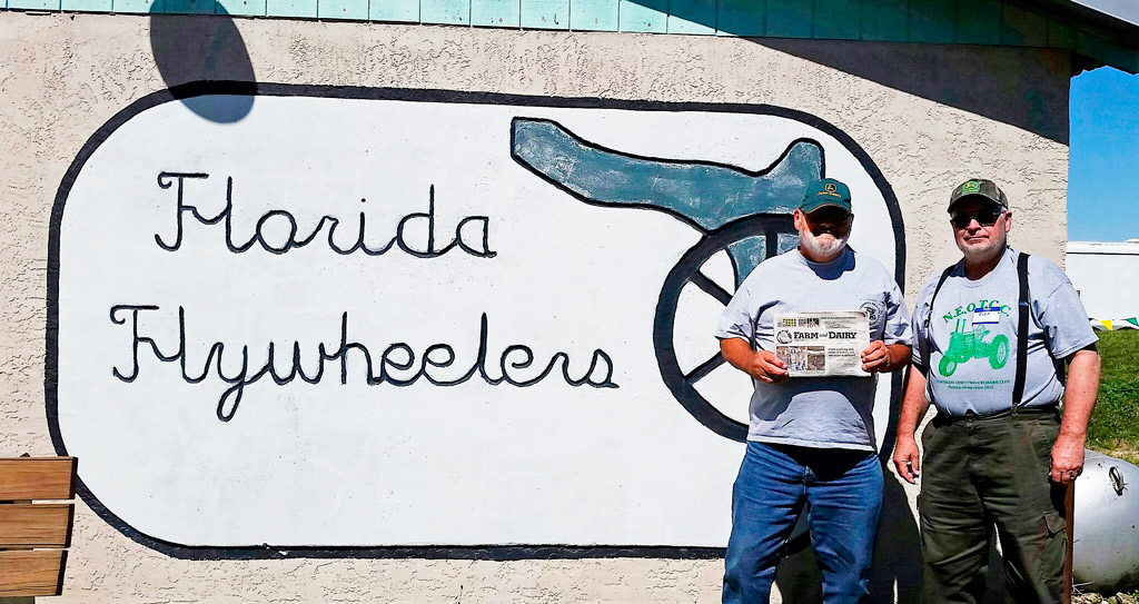 Melvin Rhiel and Rick Borland of Carroll County, Ohio, took Farm and Dairy along with them to the Florida Flywheelers Show in February.
