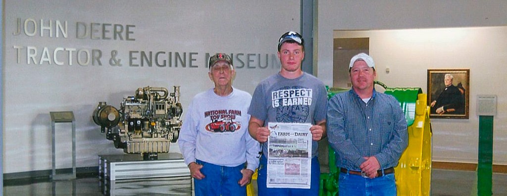 While attending the National Farm Toy Show in Dyersville, Iowa, Wayne Cooper (L-R) of Fombell, Pennsylvania, Mitch Whiting and Duke Whiting visited the new John Deere museum in Waterloo, Iowa. (Don’t look too close, Wayne is wearing an I-H hat. Oops. But we’re glad he took us along anyway!)