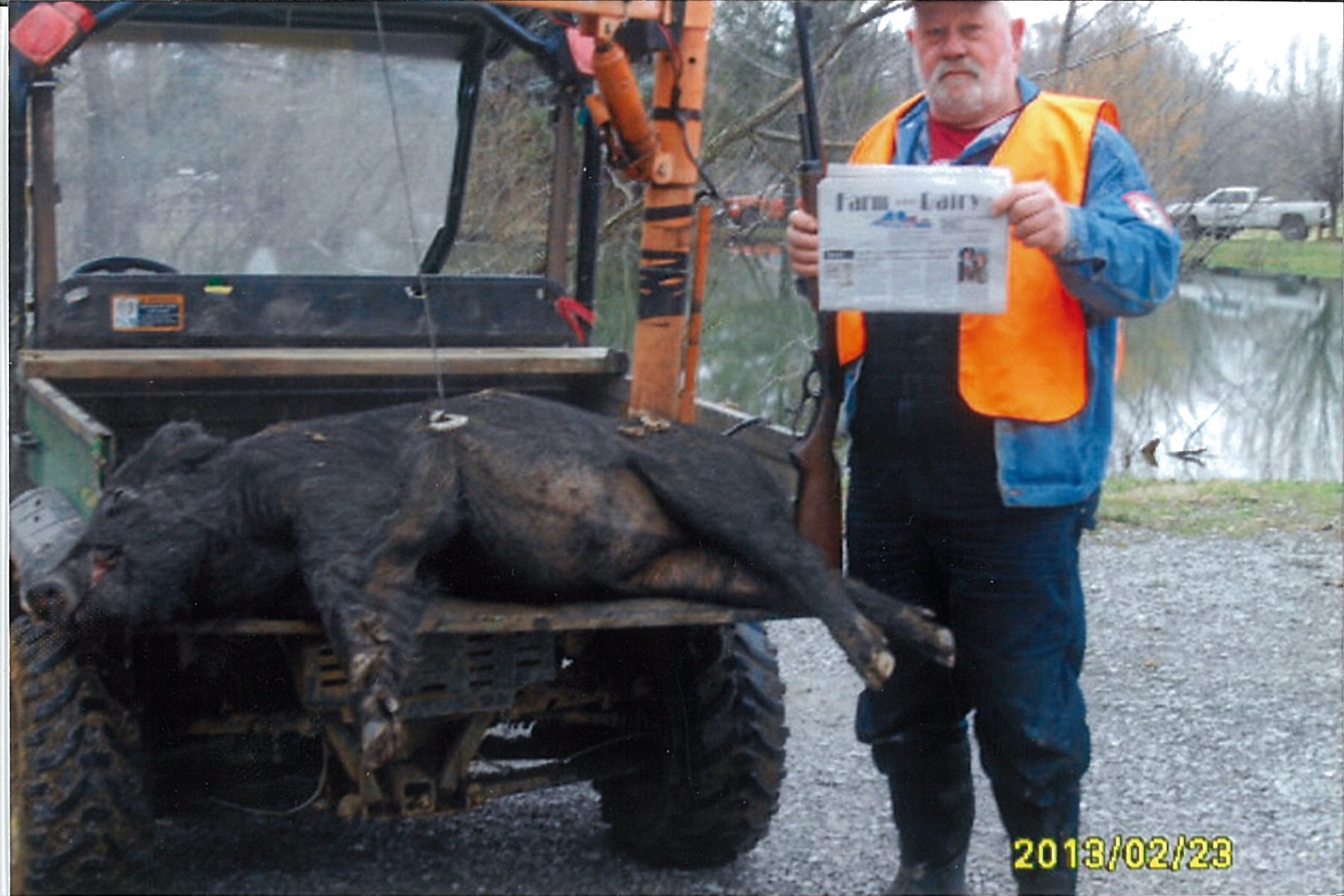 John Dewell, of Scio, Ohio, went wild hog hunting in the mountains of Tennessee. He got a nice boar and Farm and Dairy was there to record the kill! He shot it with a 1895 Marlin 45-70. Dewell is hoping to go bear hunting out West next year.