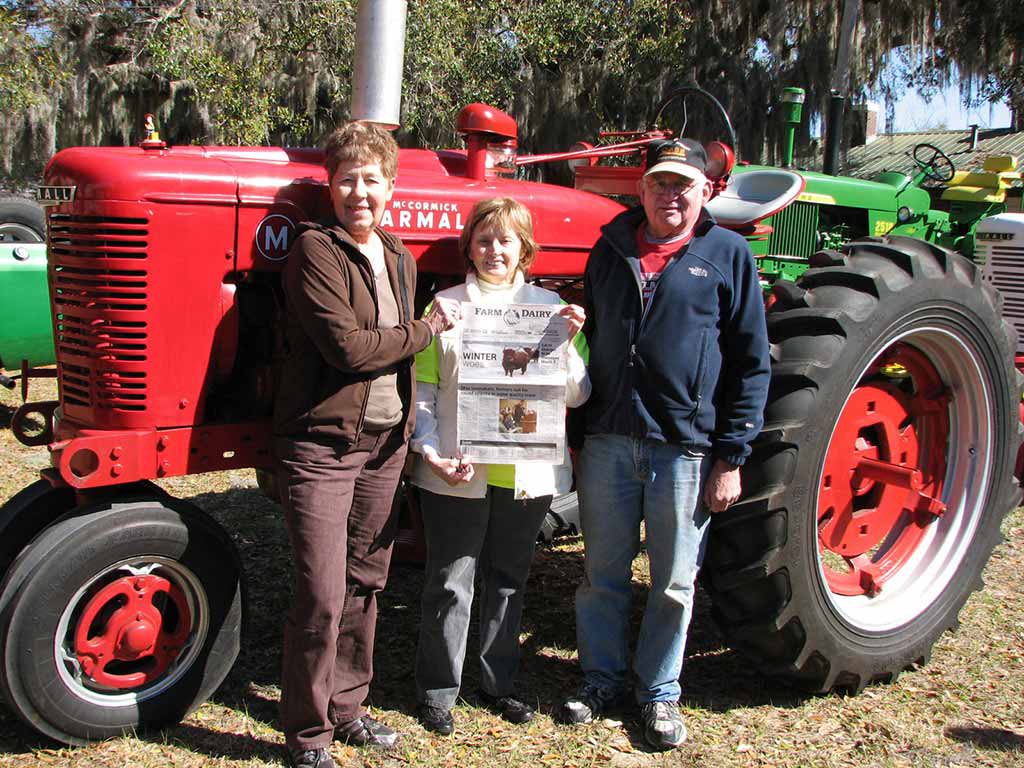 Wayne and Marilyn Johnson, of Bristolville, and Reva Montgomery, of Lordstown, middle, participated in Drive Through the Groves, a 40-mile drive held by the Florida Flywheelers, of Fort Meade. Participates drive antique tractors and cars. The Johnsons and Montgomery traveled from the Flywheeler Park to Frostproof, Florida, through beautiful surrounding areas and back to the park. While on lunch break in Frostproof, they met with Ohio friends, Wayne and Marilyn Johnson, who are officers in the Ashtabula Antique Engine Club. As you can tell by the way they are dressed, it was not typical warm, Florida weather. When they left the park that morning it was 36 degrees.