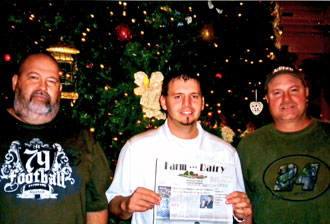 Rodney and Andrew Gordon, both of Sugarcreek, Ohio, and John Bowers, of Dover, Ohio, vacationed at Disney World during the holidays and visited the Christmas tree at the Grand Floridian Hotel. Their families, and Farm and Dairy newspaper came along for the ride!