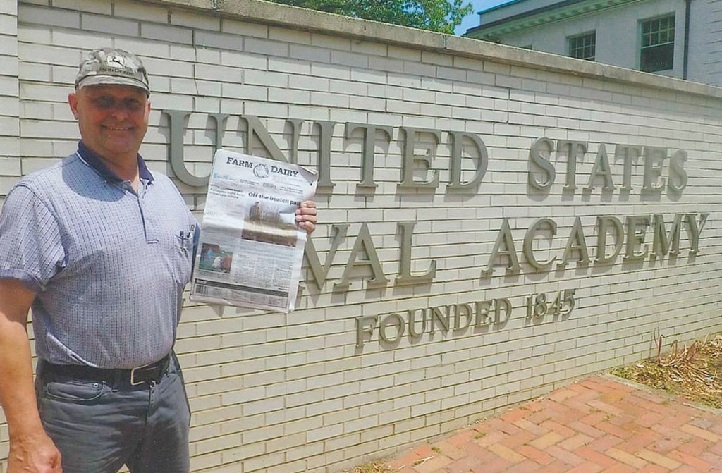 Mark Holian, of Jamestown, Pennsylvania, went to the U.S. Naval Academy in May to attend the graduation of his nephew, Jesse Holian. Jesse graduated from the U.S.N.A. May 22. Mark took Farm and Dairy along to share with his brother. Congratulations, Jesse!