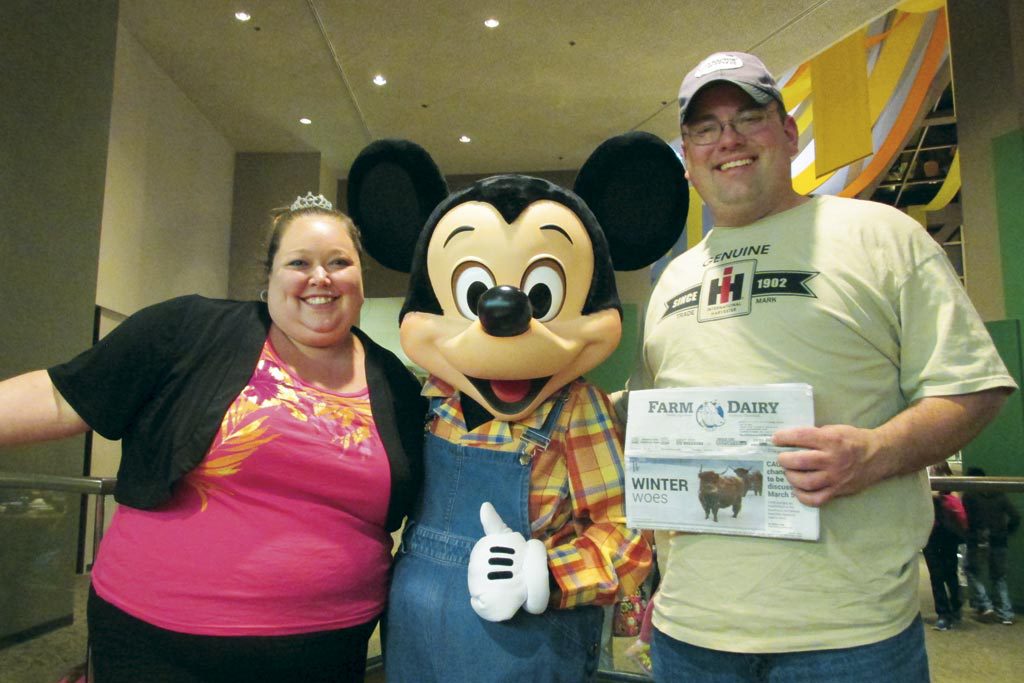 Lane Lawrence, of Youngstown, and his girlfriend, Ashley Fisher, of Ellwood City, Pennsylvania, took a seven-day vacation to Walt Disney World. The couple is pictured with Farmer Mickey, and Farm and Dairy, too, at The Garden Grill in Epcot Center. Most of the food at the restaurant is grown on site. Visitors can see the growing operation on the Living with the Land ride at Epcot.