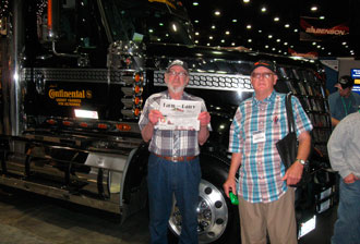 Raymond Little (left), of North Jackson, Ohio, and his brother, Gary Little (right), of West Middlesex, Pa., attended the Mid-American Trucking Show in Louisville, Ky., recently. They are standing, along with Farm and Dairy, in front of a semi-truck.