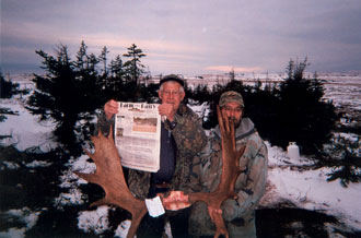 Warren Smith, of Schaghticoke, N.Y., holds up a copy of Farm and Dairy while moose hunting at Trophy Lake in Newfoundland, Canada. Looks like his hunting trip was successful!