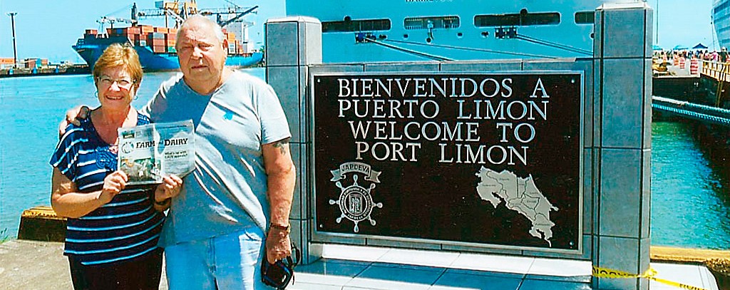 We received a warm welcome to Costa Rica’s Port Terminal of Limon with readers Chuck and Betty Franek, of Chagrin Falls, Ohio. The Franeks took us along on their 10-day Panama Canal cruise in February. (When can we go back?)