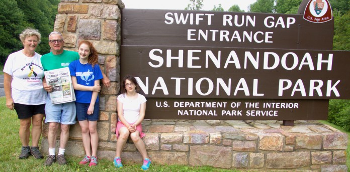 Chip and Linda Grimm spent time with their granddaughters, Natalie and Marissa Clark, hiking a 5-mile roundtrip to South River Falls in the Shenandoah Mountains in Virginia.