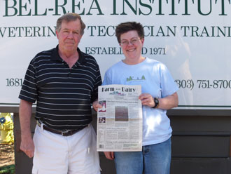 David Theiss, of North Canton, Ohio traveled to Denver with a copy of the Farm and Dairy, to watch his daughter, Deborah Shaffer, of Aurora, Colo., graduate from Bel Rea Institute as a veterinary technician in June.