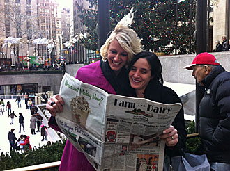 Jennifer Witmer, left, of Lisbon, and Elizabeth Palette, Poland, skipped ice skating at Rockefeller Center to read the Farm and Dairy while celebrating a girls’ weekend in New York City.