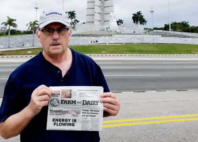 David Demler of Carey, Ohio, read the Farm and Dairy while he visited Havana, Cuba, in January. He is at Revolution Square with the Jose Marti Memorial behind him. (Submitted photo)