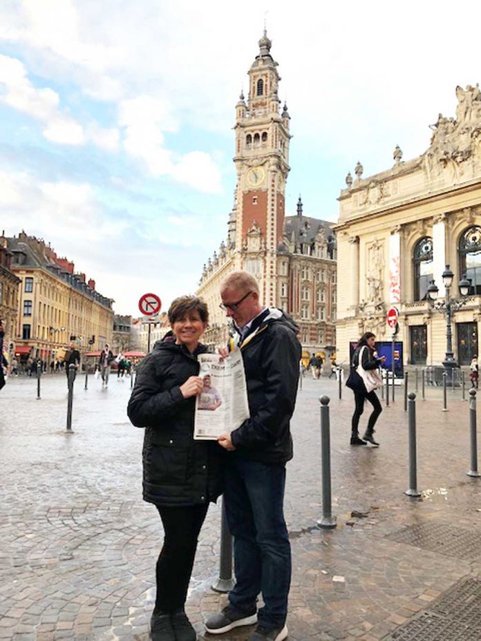 Dan and Brenda Metzger, of North Canton, Ohio, took a late fall trip to visit their daughter Angie Metzger in London. Angie is a student at the University of London. They also took the Eurostar train to Lille, France, for a couple days, then on to Bruges, Belgium, for a couple days. Dan and Brenda are pictured in the central square in Lille.